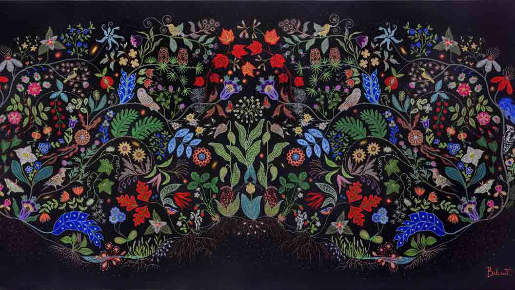 Evan: Valentino’s Resort 2016 collection featuring work by Metis artist Christi Belcourt and her work Water Song